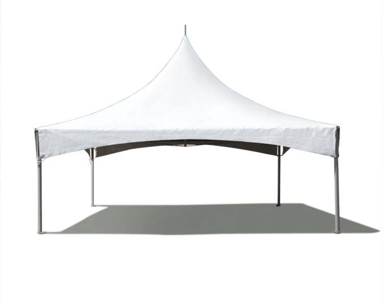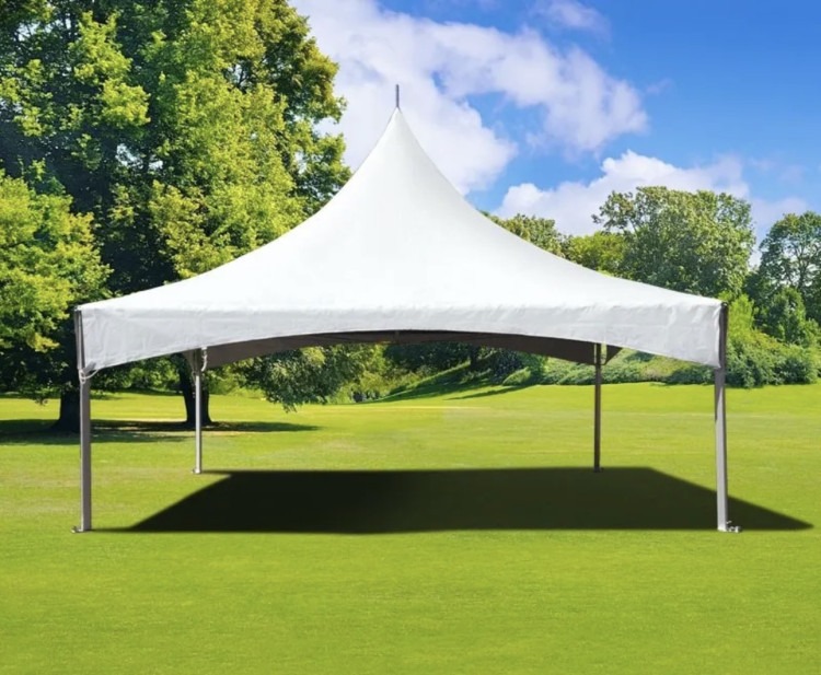 A 20x20 high peak tent is a spacious, eye-catching event canopy that gives you about 400 square feet of covered space beneath a sweeping, peaked roof. Built for outdoor gatherings where both shelter and style matter, it provides ample room for seating, dining, a dance floor, or display areas while keeping guests protected from sun, light rain, and wind. The tall center peak creates an open, airy interior with better airflow and sightlines than a low, flat canopy, making it feel less cramped even when filled with people and furnishings. Sidewalls are often available to add privacy, block wind, or control temperature, and the straight perimeter makes it easy to arrange tables, chairs, or staging around the inside edge. Setup requires a level surface and secure anchoring—stakes, weights, or ballast depending on the venue—and it’s typically used for weddings, receptions, corporate gatherings, fairs, and backyard parties where a polished, upscale look is desired. Overall, it’s a versatile, attractive shelter that balances protection and presentation for medium-sized outdoor events.